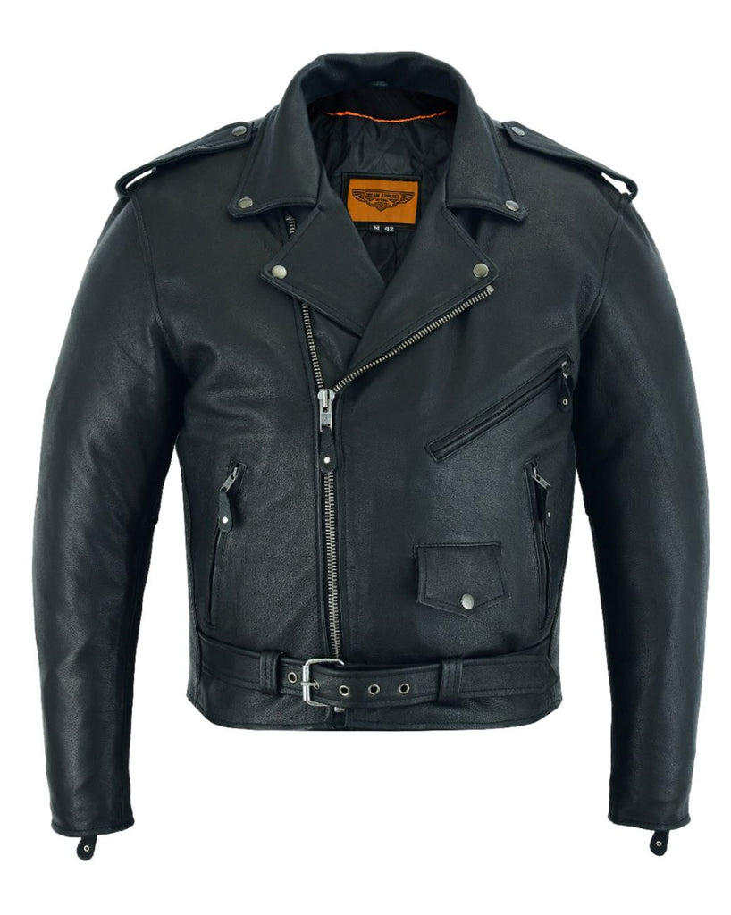 Classic Biker Police Motorcycle MC Jacket Concealed Gun Pockets Cowhide Leather Heavy Duty