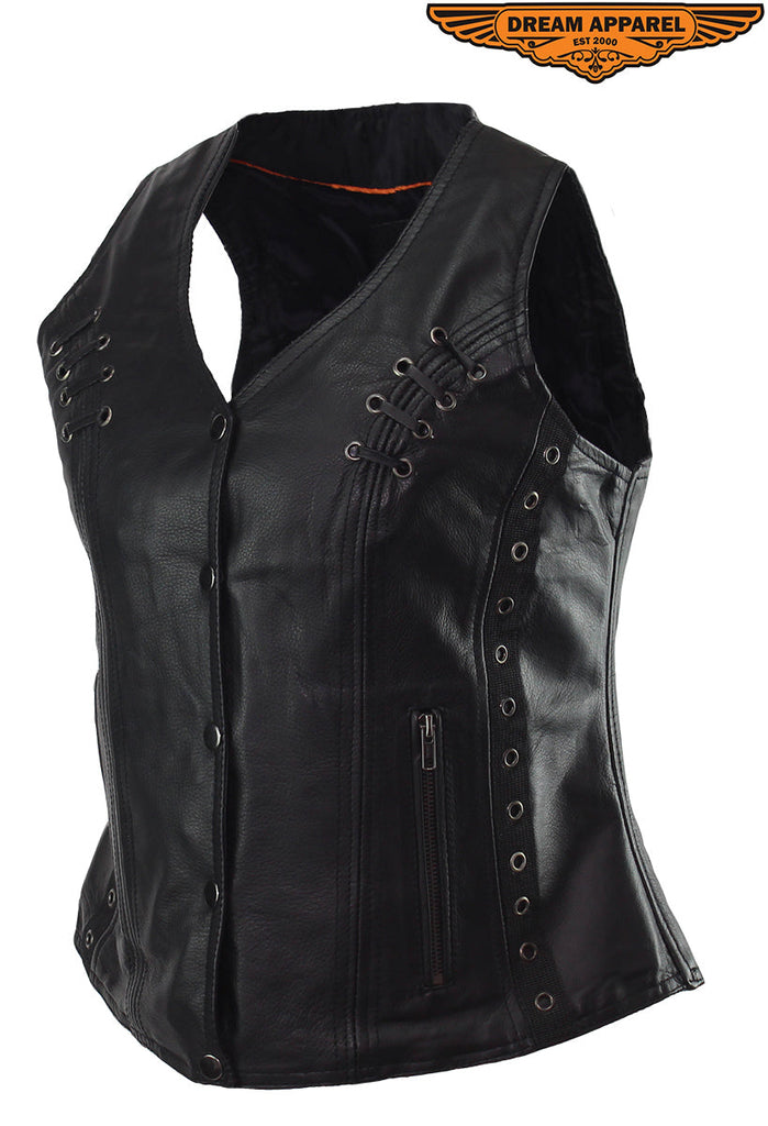 Dream Apparel Ladies Naked Cowhide Leather Vest With Concealed Carry Pockets