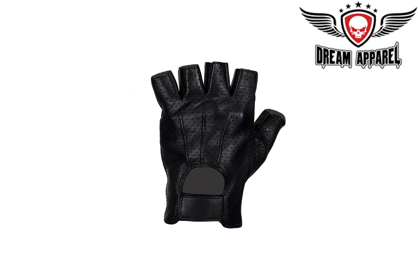 Dream Apparel's focus is, and will continue to be giving our bikers the best products so they can continue to outperform everyone else. With that being said, we'd like to introduce our all new black fingerless riding gloves made from a beautiful deer skin leather. Extra padding is placed on the palms of the gloves in order to give riders a very comfortable and protected feel. The velcro straps on the wrists allow an adjustable fit. Multiple vent holes are placed on the back of the hands giving your hands room to breathe. The soft inner liner makes these gloves one of the best around, matching comfort with beauty. A must have for any biker.